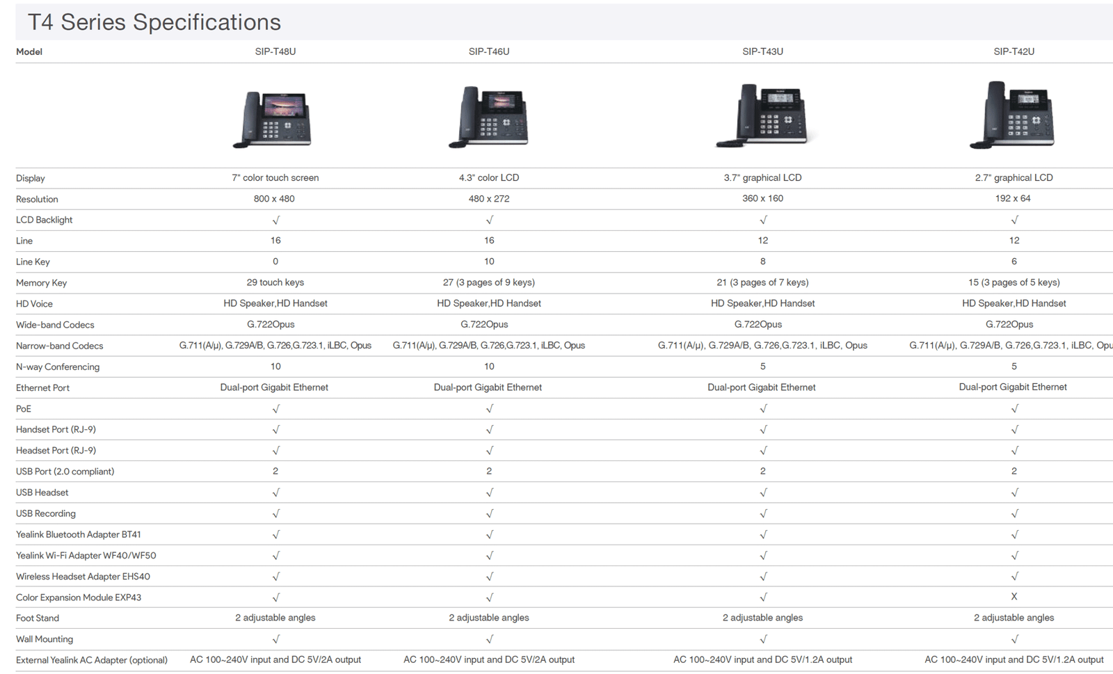 Yealink’s T4U Series phones are an enterprise-grade solu- tion with different endpoints for the most prevalent usages in various business sections. Combining optima HD audio with an elegant profile, accessible color display, multi-line features, and Gigabit Ethernet connectivity, the T4U Series is the perfect choice for administrative staff, knowledge workers, managers, and executives.